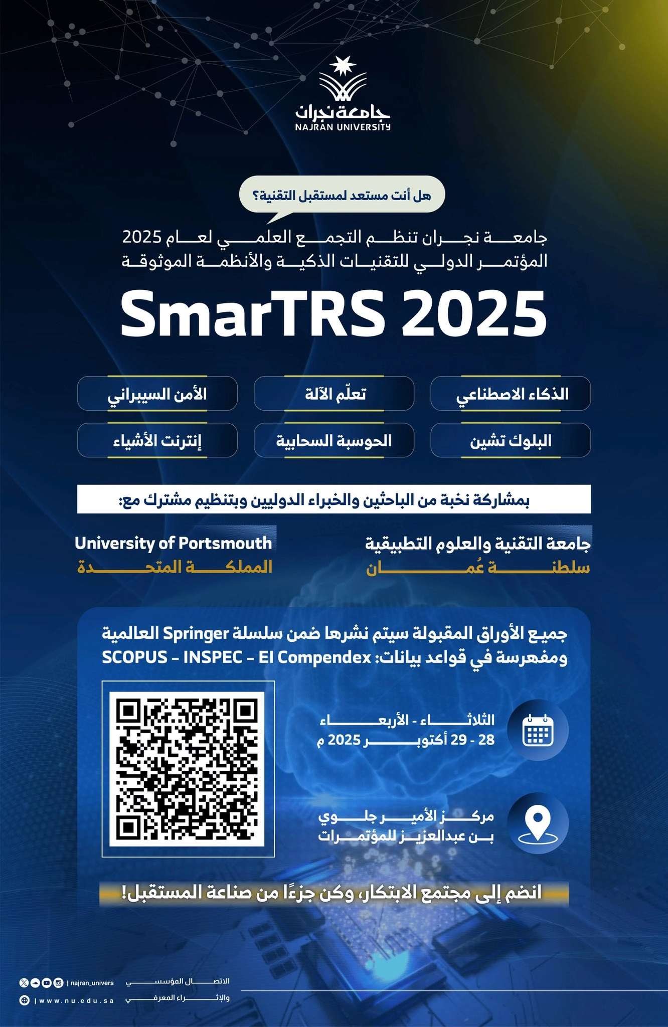 null Najran University organizes the 2025 Scientific Gathering: "The International Conference on Smart Technologies and Reliable Systems (SmarTRS 2025)"